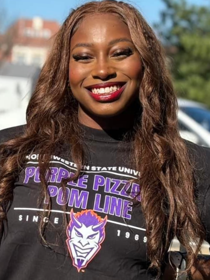 Pictured above is our Gym Team Coach Faith, former NSU Pom Line member.